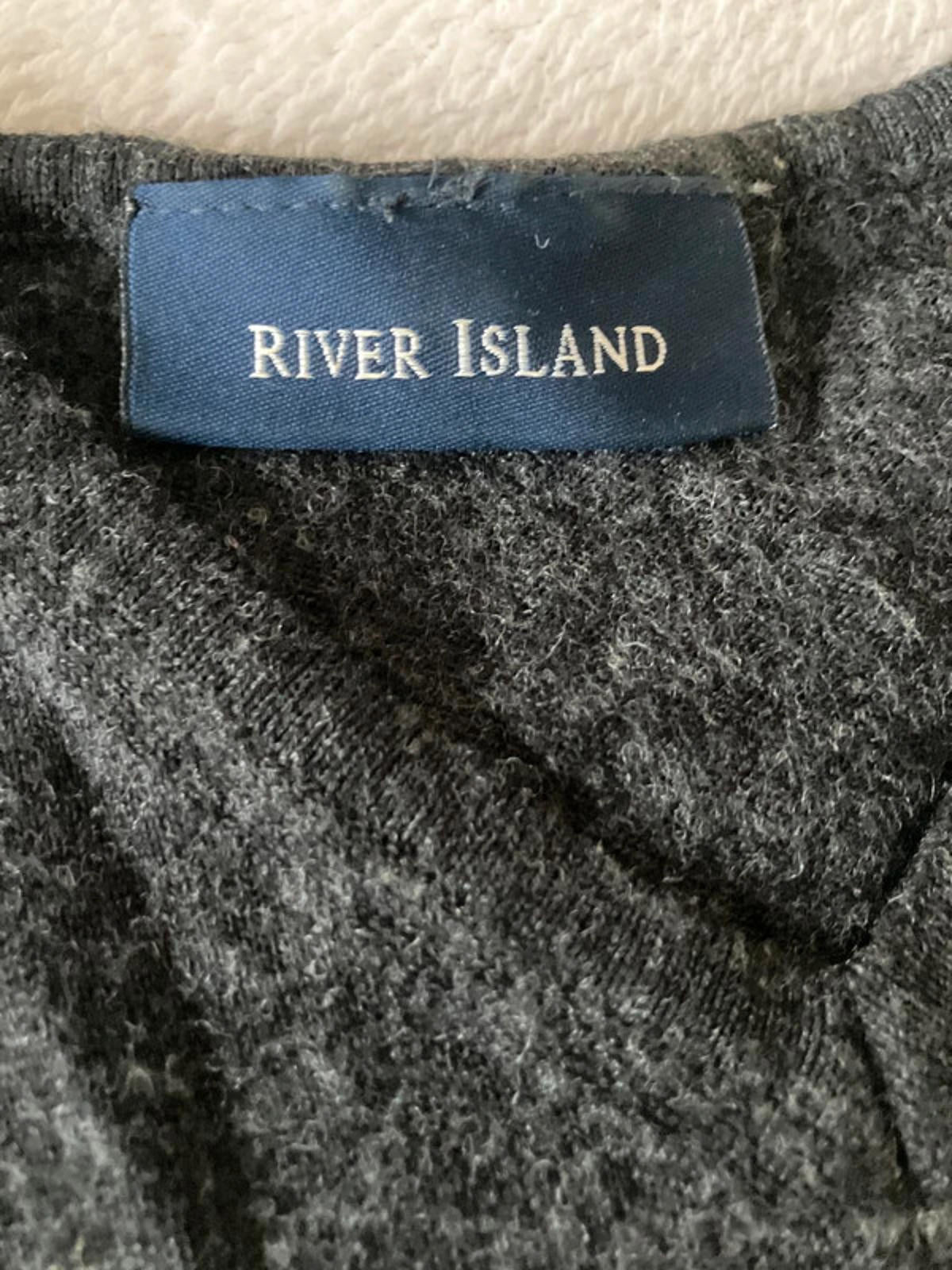This gently worn River Island men's sweater has been a wardrobe favourite, perfect for cosy evenings at home or smart casual workdays. It's a classic dark grey V-neck that pairs effortlessly with jeans or chinos for a timeless look. The soft knit fabric offers comfort and warmth, making it ideal for layering during cooler seasons. Looked after with care, it’s still in lovely condition and ready to bring easy style and comfort to your everyday outfits.